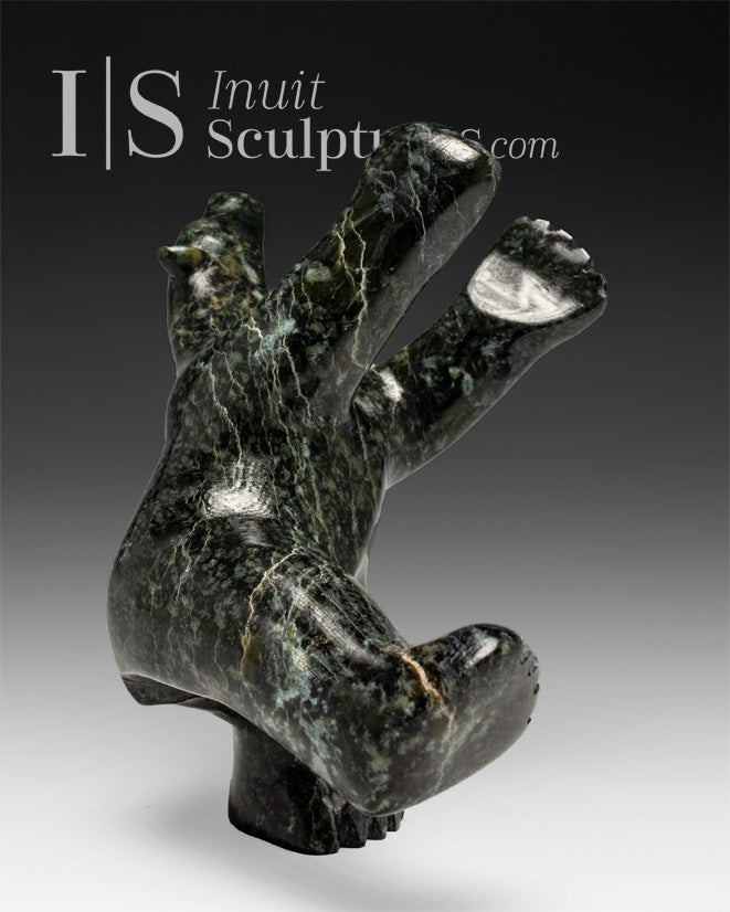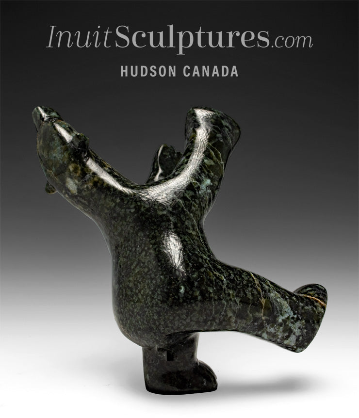 His opulent dark green colour is the classic look for a traditional Dancing bear from Cape Dorset.