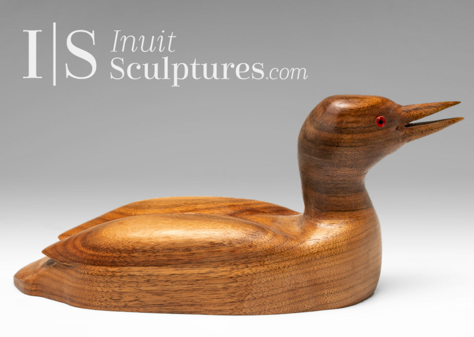 Haggerty's loon decoy is carved from beautiful golden red wood.