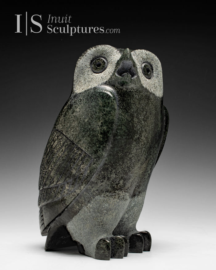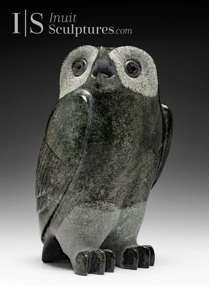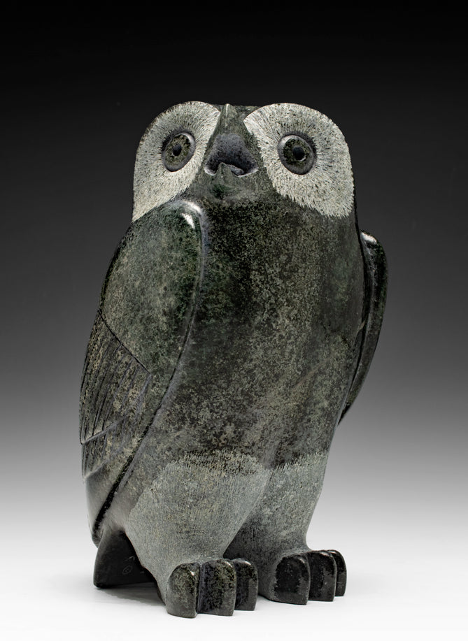 8" SIGNATURE Owl RARE Grey Stone by Pits Qimirpik *Brigadier*