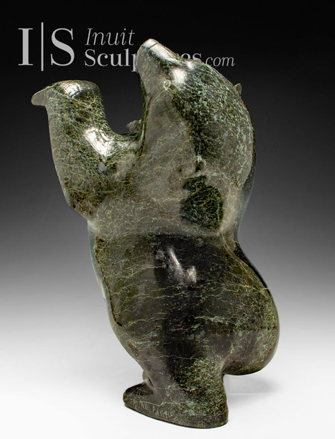 Inuit art collectors are familiar with Nuna's ability to pose his Dancing bears with their backs flexed backward in almost impossible angles.