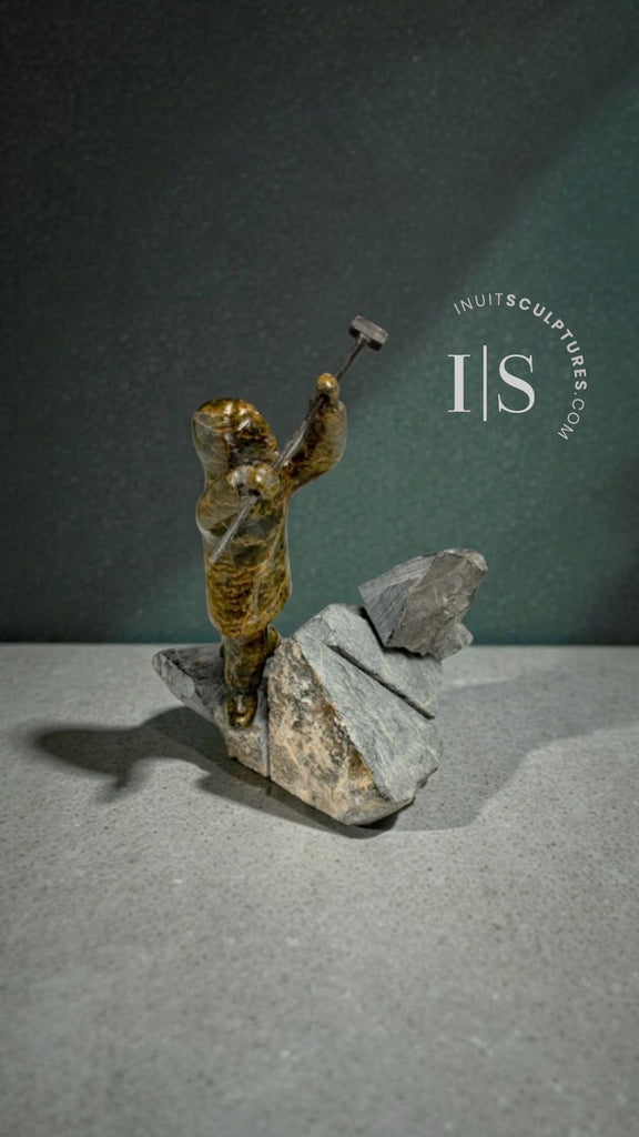VINTAGE 7" Eskimo Carver at the Quarry by Late Kellipalik Qimirpik *Love of the Art*