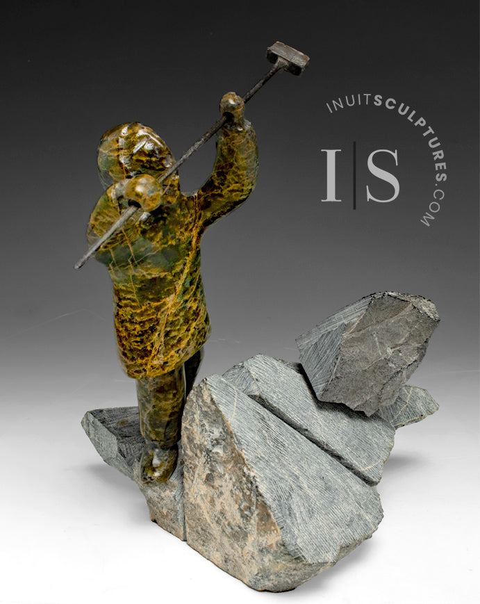 The reality is that the Inuit carvers must travel long miles often under dangerous conditions to saw or chip stone from open quarries.