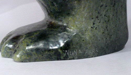 Bears by Nuna Parr are very hard to get, Inuit art galleries line up to get one or two. This is because Nuna is the most famous Inuit artist in the world for bears .