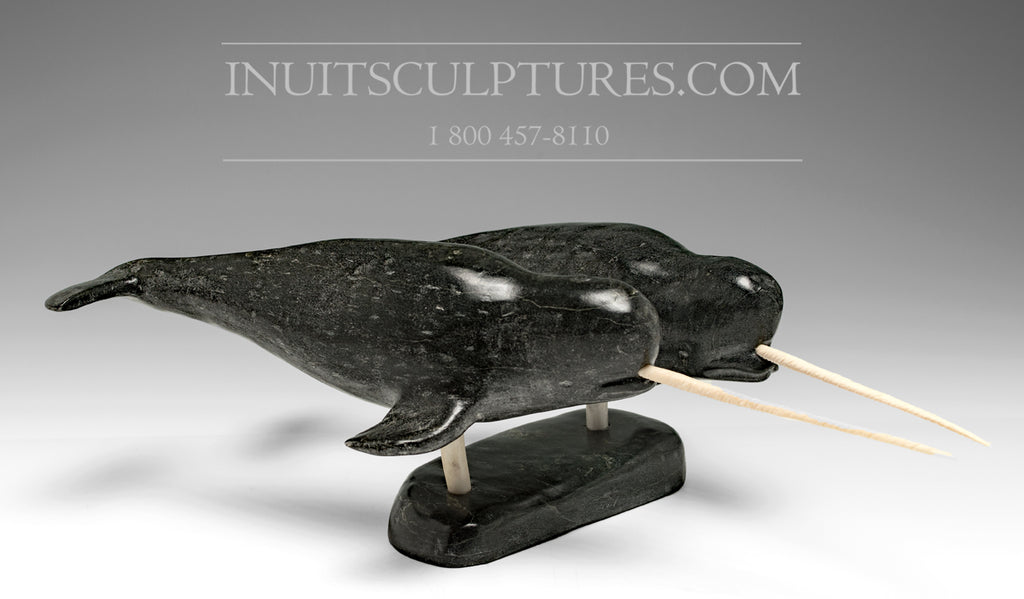 Darryl has chosen a dramatic dark stone to create this stunning pair of narwhals.