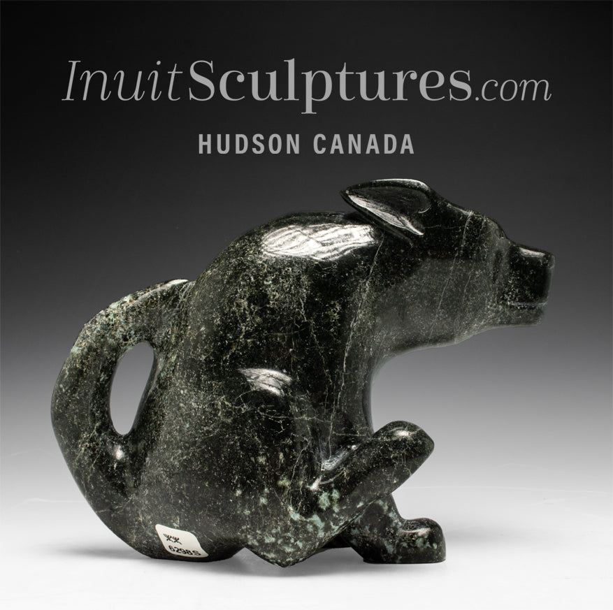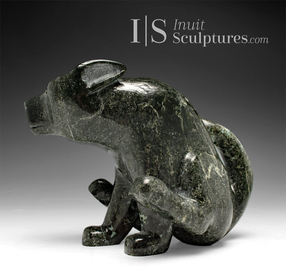 **This Item is Eligible for our 0% Interest Layaway Plan.GOOD DOG is the first carving of an Inuit dog I have seen, that is in a sitting position with both hind feet held above the ground.Any moment, Good Dog is going to start thumping his hind leg as you scratch his belly!Kelly Etidloie is known for his carving innovation.He surprises and raises the bar at the same time.Good Dog's head is large and his facial features are canine PERFECTION.