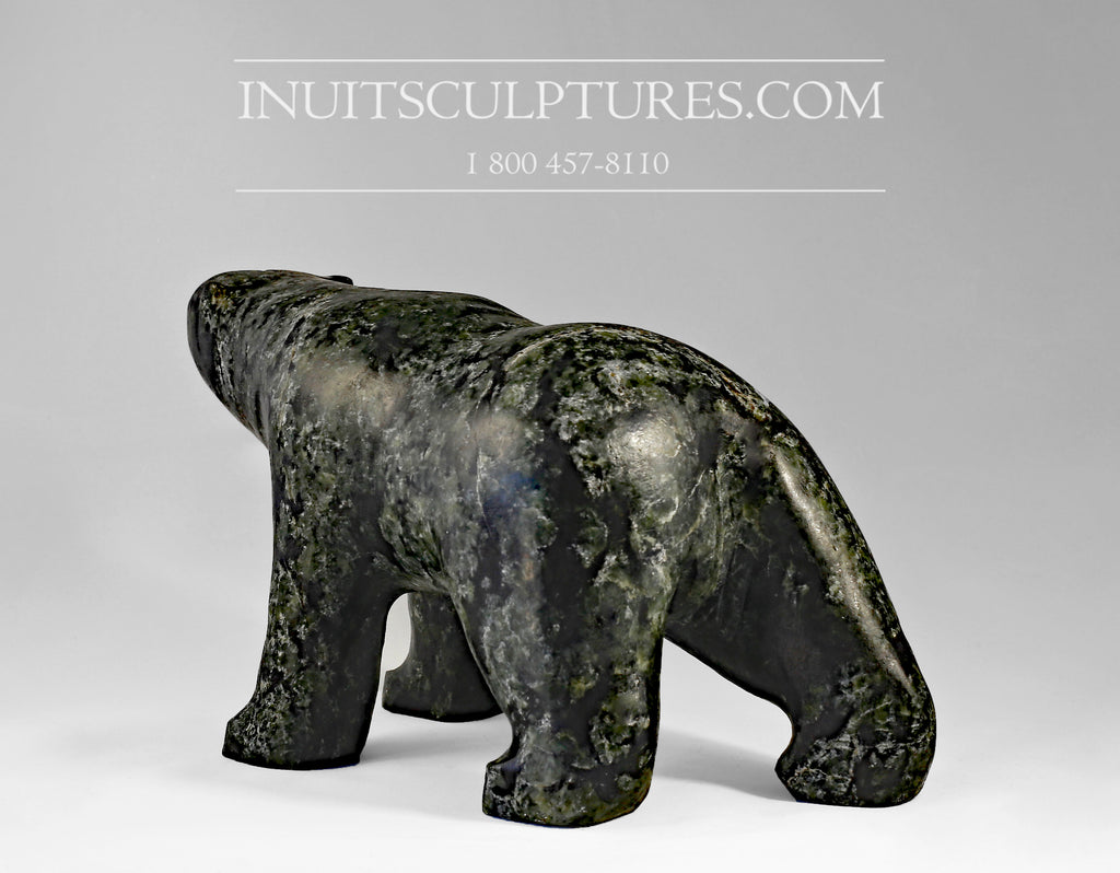 This is a beautiful rendition of a walking bear by Louis Uttaq. The rawness and rudimentary angles make this a timeless piece out of Gjoa Haven, NU.