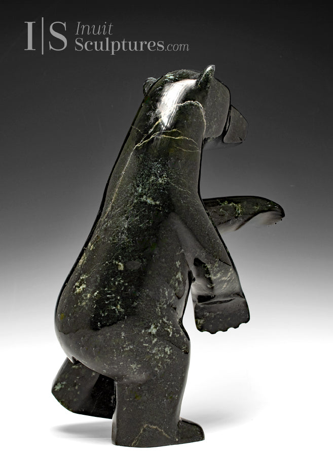 This stunning piece is another of Peter's two way dancing bears. This means the bear can balance on either of its back feet. The artist who can carve a two way bear requires patience and talent because it is very difficult to achieve this posture. Kooyoo Peter is one of the artists today that has this ability.