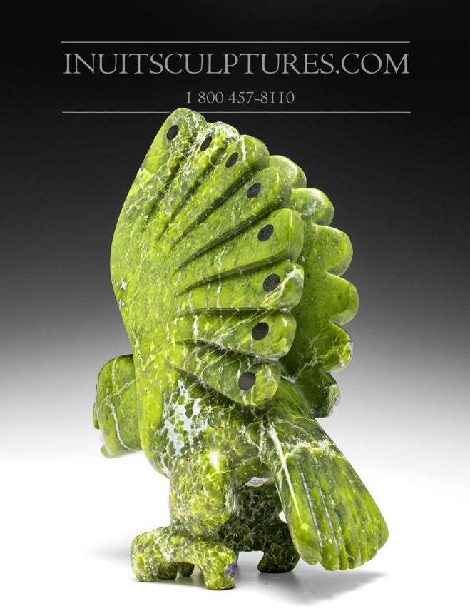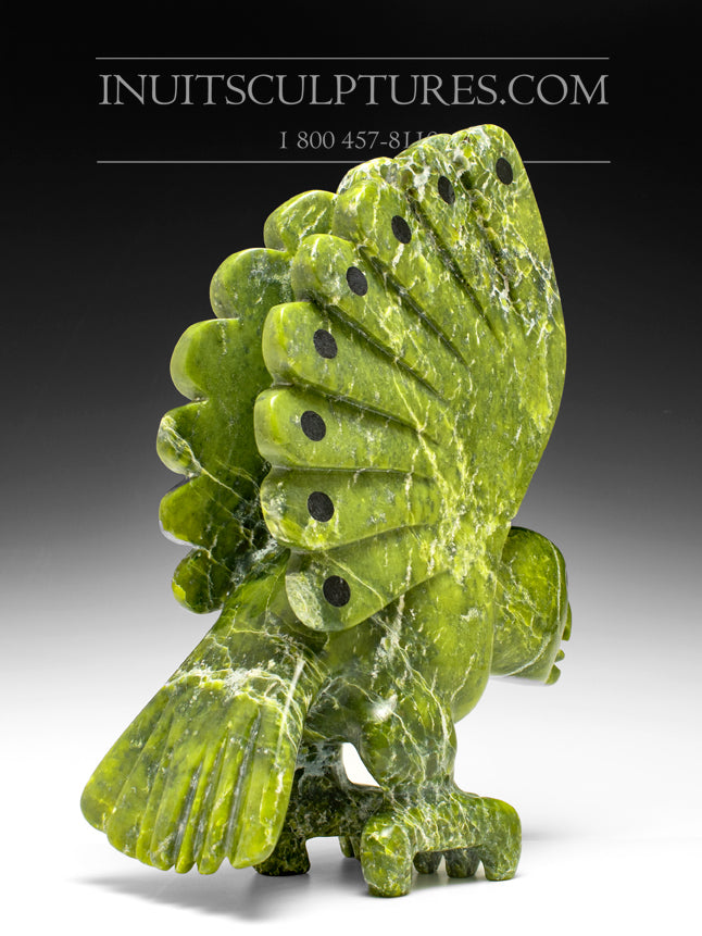 “Owl Spirit” is irrefutable proof of Toonoo’s mastery of carving and his innate ability to contrast a sense of the dramatic against the lightness of humour within his carvings. In choosing brilliant apple green marble for this piece, Toonoo departs from his usually earthy colour palette.
