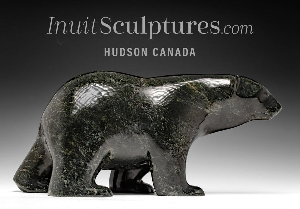 Ashevak Adla's Midnight Walk, is one of the nicest Walking bears that you will ever see. In my opinion, it is extremely rare to see such deep and uniform black marble freckled with medium green and gray flecks.