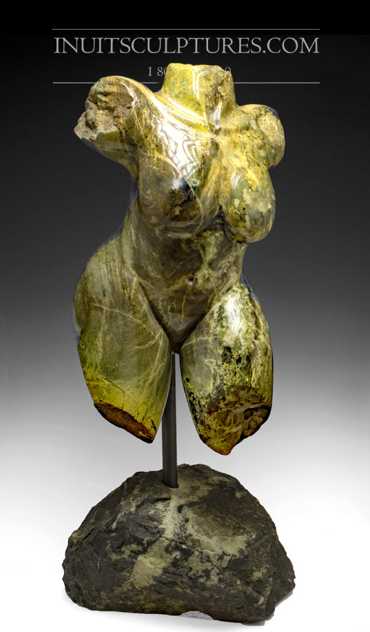 Goddess is a piece for the ages. She has a Classical female form which is a rare and unexpected aesthetic in the Inuit art world.