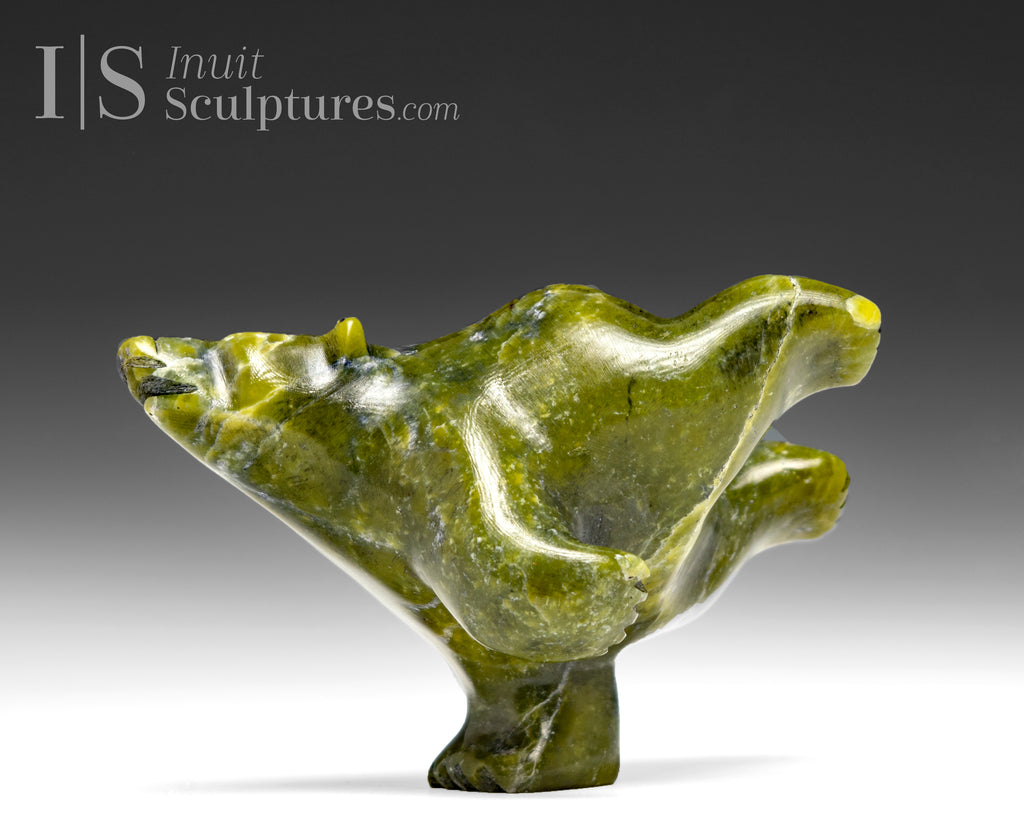 This is a gorgeous and lively diving bear done in a radiant green stone. It caught my eye immediately.