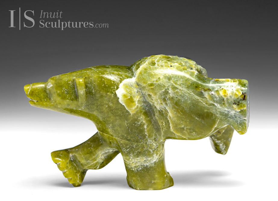 It is exceptionally difficult to carve bears that can balance on any of its four paws. This is an engineering feat and is attribute to the experience and skill of these Inuit carvers.