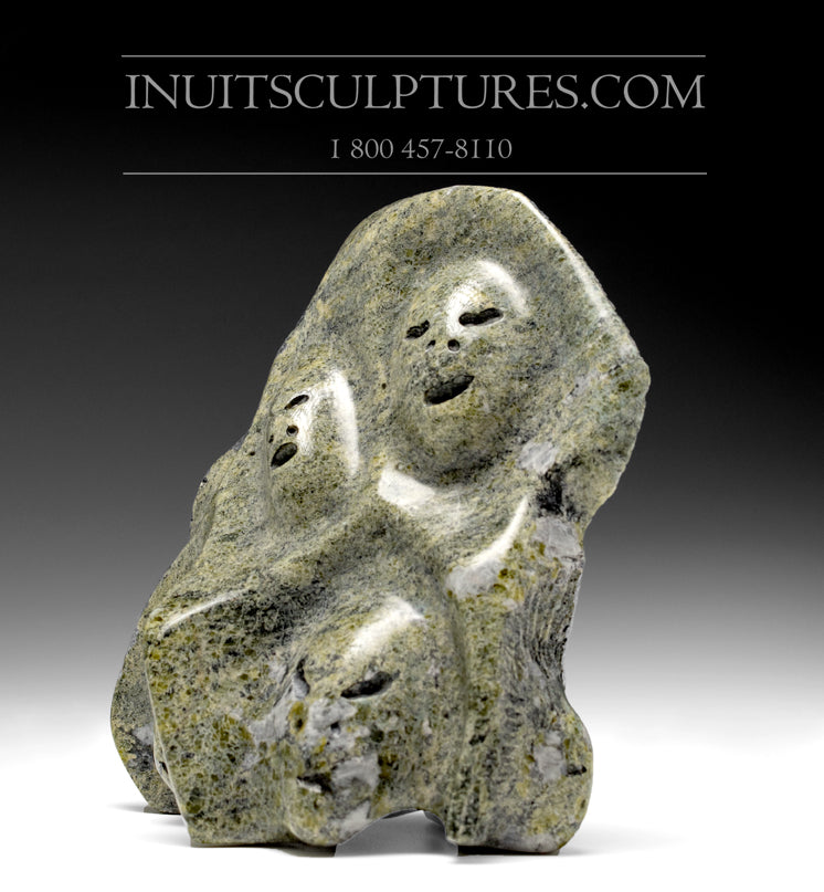 This is a beautiful rendition of spirit faces. It is done in a palid green stone. The piece is timeless and will one day be featured in any auction catalogue or museum.