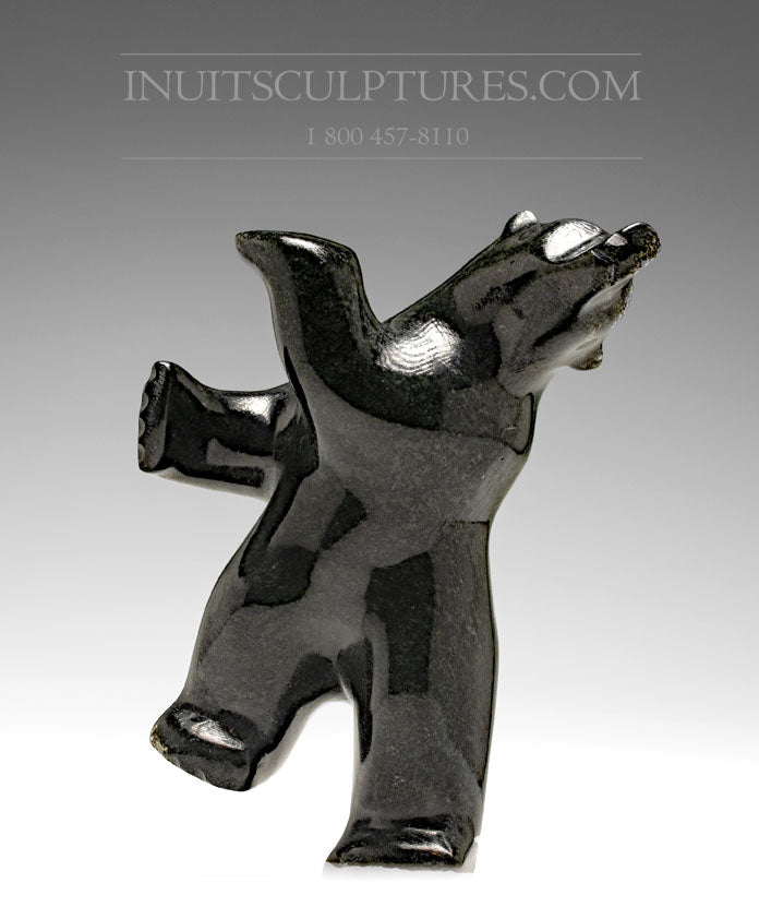 Oqutaq's love of the animal shines through both in his art and his words. Rather than carving realistic replicas of bears, this artist chooses to capture the animal's essence; its bearlike character. Oqutaq’s bears almost always stand or 'dance' on one leg, their limbs seemingly truncated or pulled close to the body.