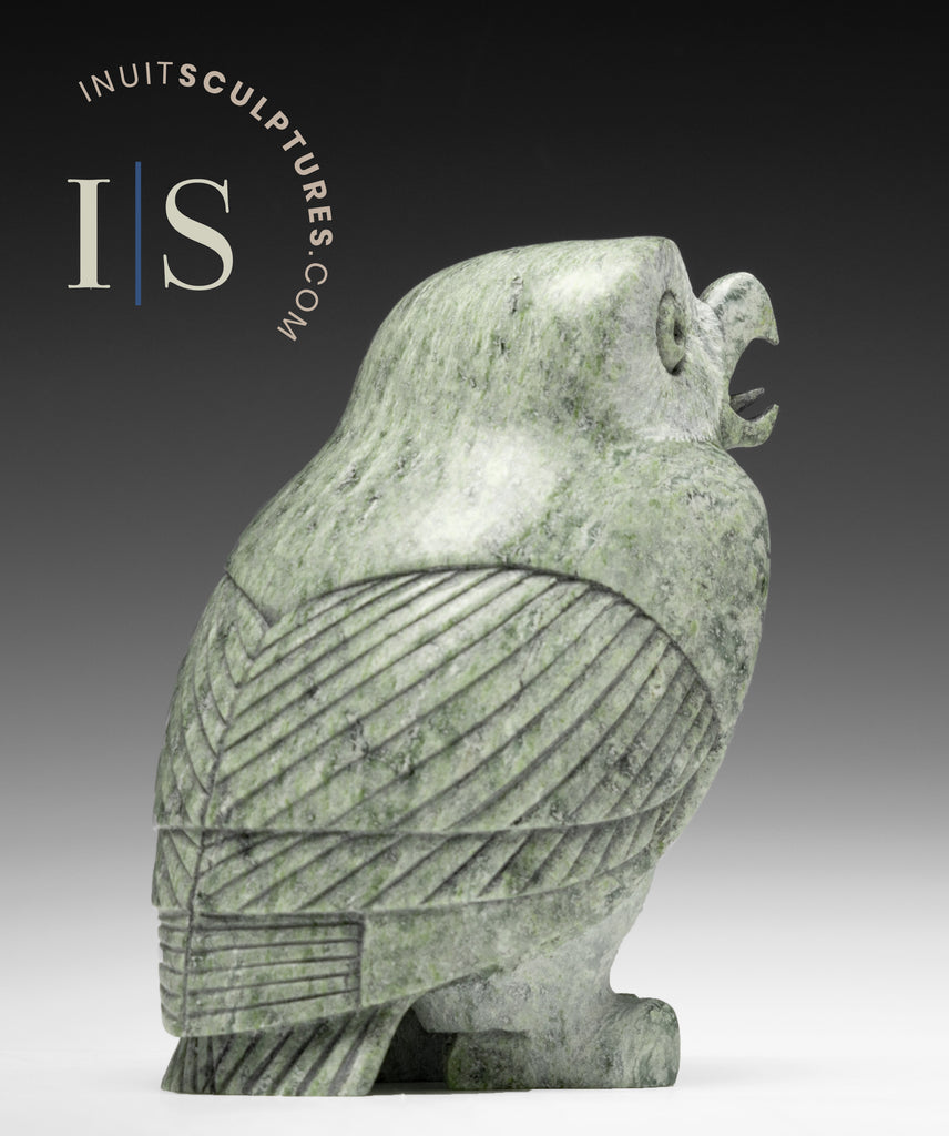 6" SIGNATURE Owl RARE Pale Green by Pits Qimirpik *Hooty*