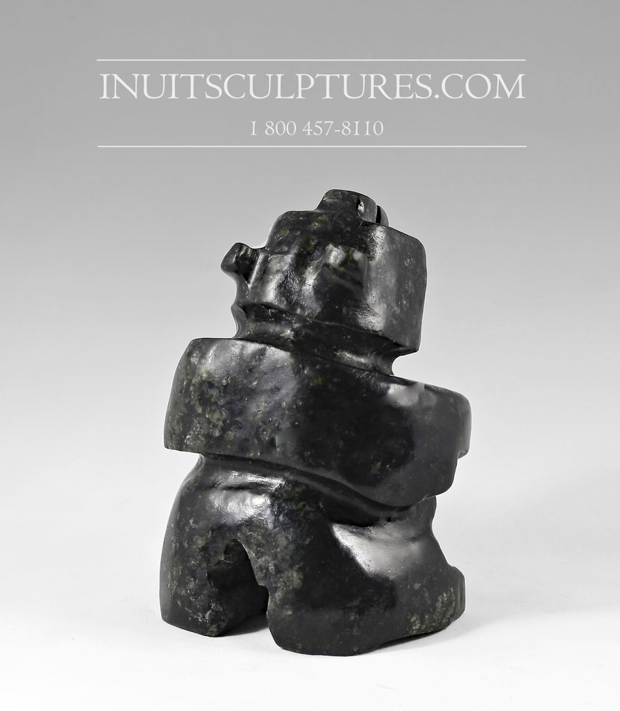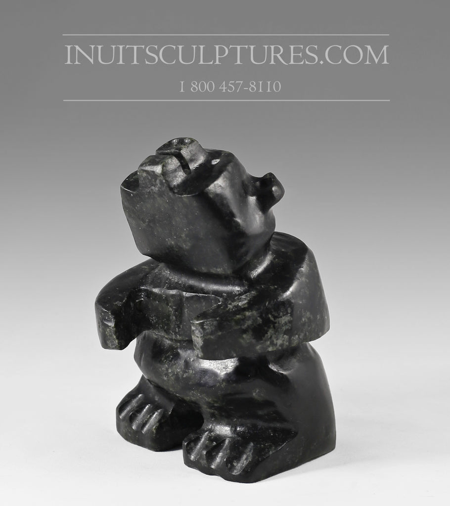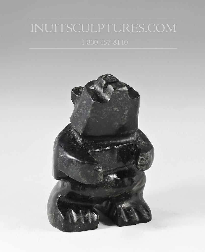 Keknek's quirky bear is carved using the traditional black stone of Gjoa Haven.