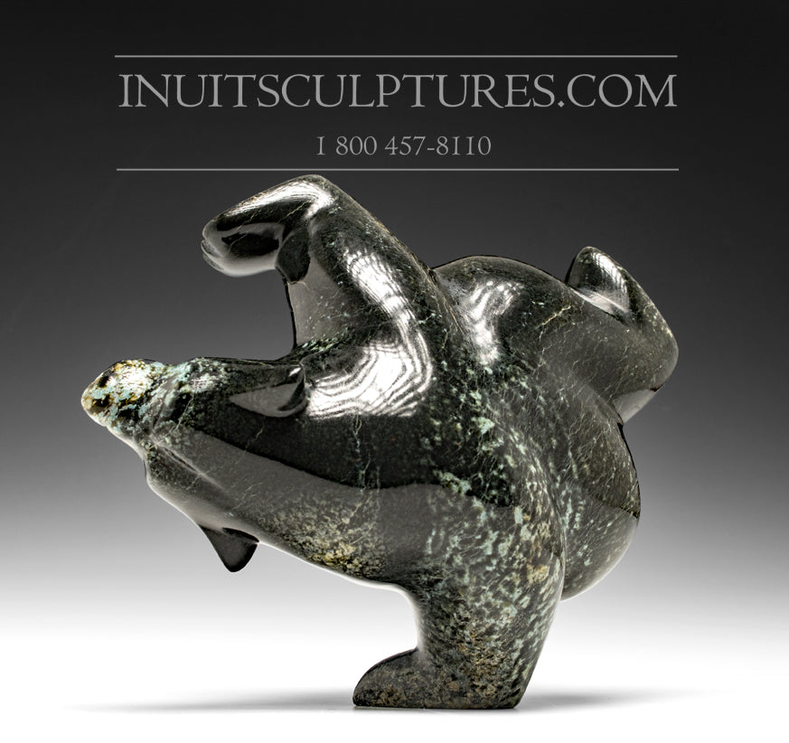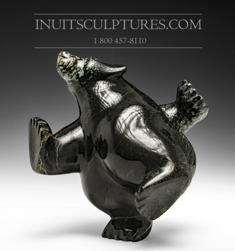 What sets this piece apart from any other dancing bear I have seen all year, is it is a 4 - way dancing bear. That is right - it an balance on all 4 paws and feet. An incredible feet for any artist to do. The skill; to have a bear balance on all 4 limbs, while at the same time, executing such grace and brilliance. Ottokie and Mosesee Pootoogook are one of the very few artists who are able to do this with their bears.