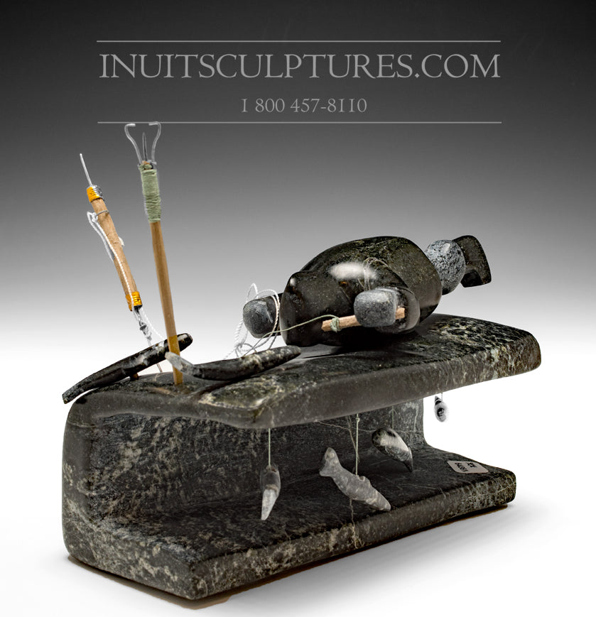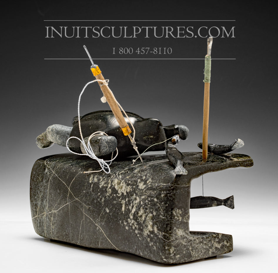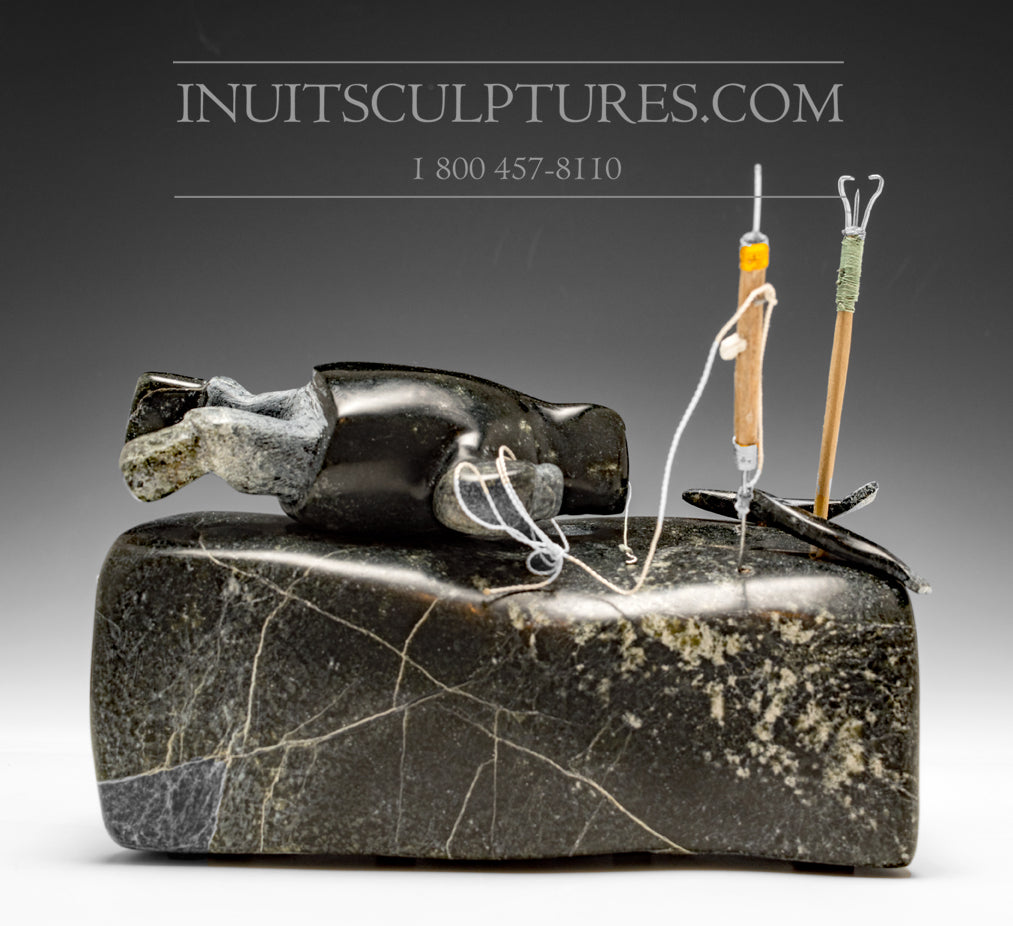 8" Eskimo Ice Fisherman on Ice by Charlie Nuliavok