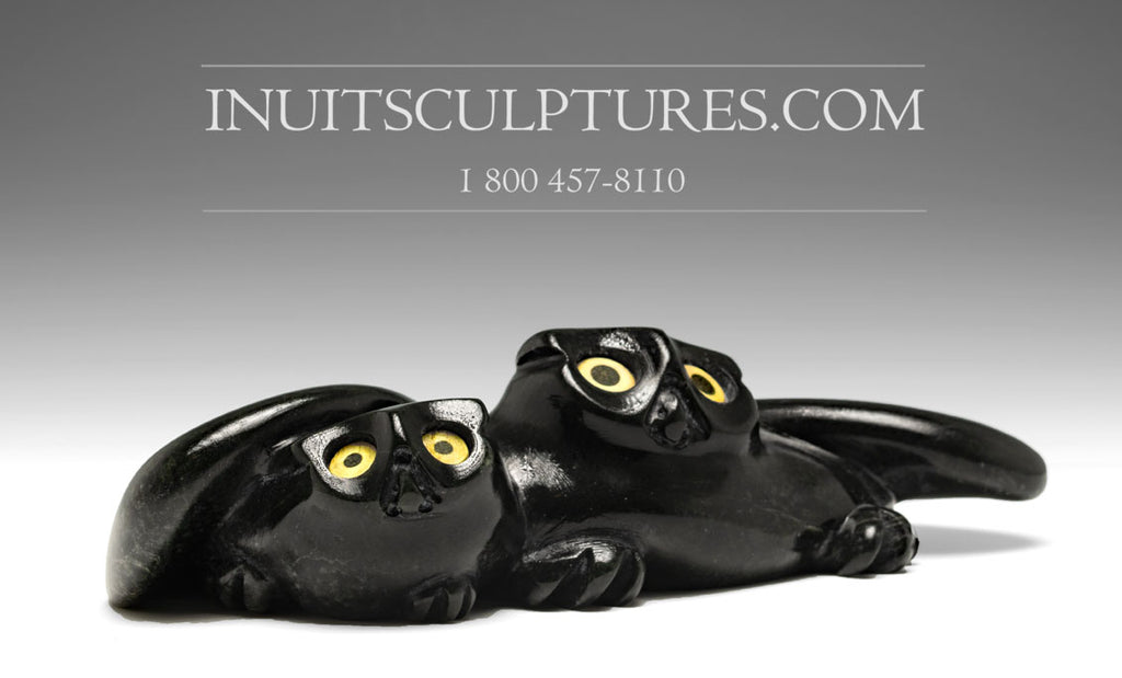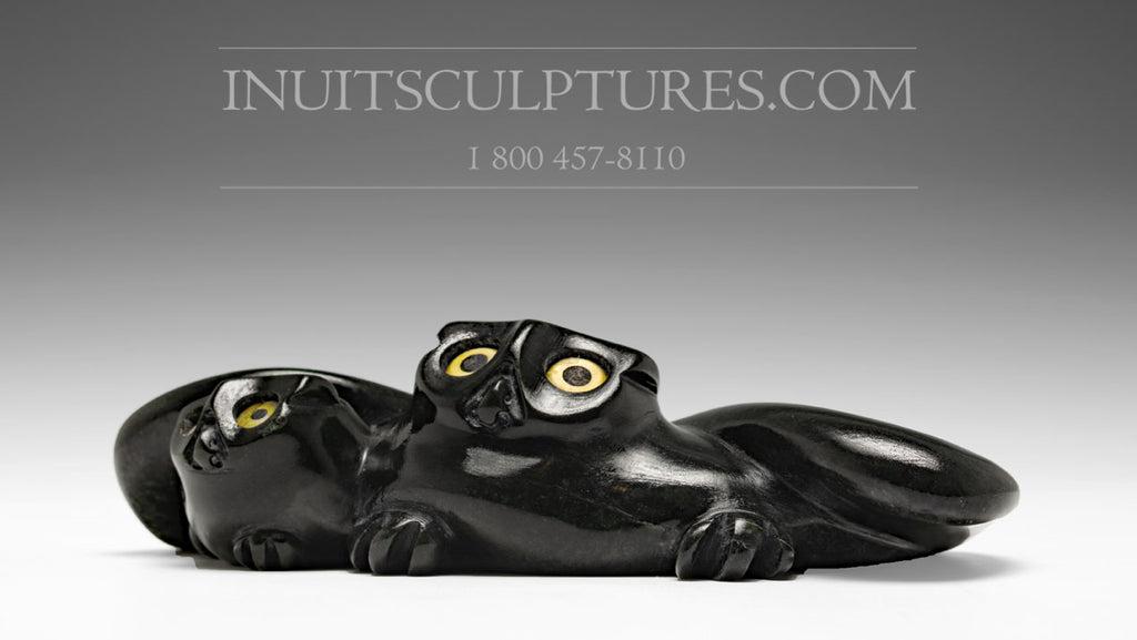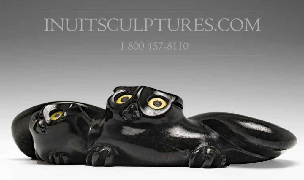 This is a gorgeous and classic snowy owl by world renown Joanasie Manning. He is internationally famous for his owls like these ones (mother owl with a chick).