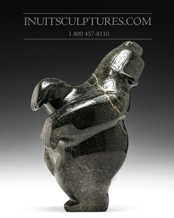 Papigatook's love of the animal shines through both in his art and his words. Rather than carving realistic replicas of bears, this artist chooses to capture the animal's essence; its bearlike character. Papigatoks’s bears almost always stand or 'dance' on one leg, their limbs seemingly truncated or pulled close to the body.