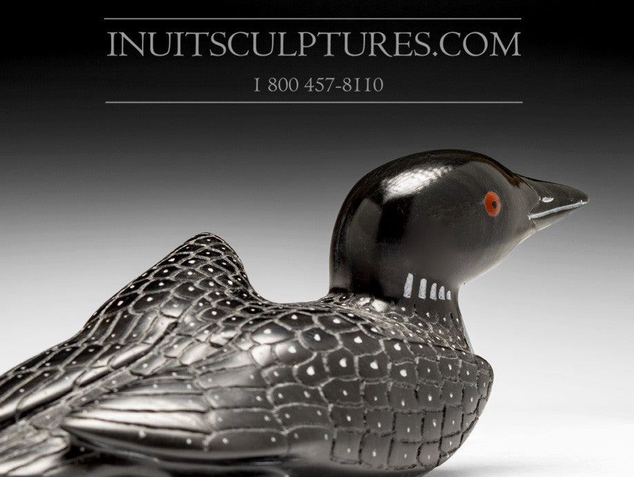 It is difficult not to be aroused by the sheer beauty of this sculpture. Not only is this loon carved with extraordinary skill and sensitivity, but Jimmy Iqaluq - the master carver who created this work - has manifested this masterpiece into a high degree of naturalism. He gave this stone a breath of life. This piece is truly a labour of love.