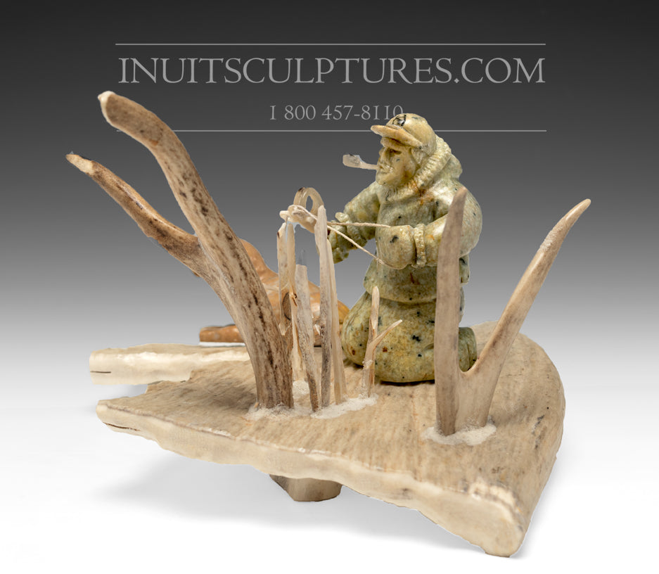 Peter K's perfectly executed scenes depicting Inuit life, take your breath away. There are so many meticulously and lovingly carved components to this scenario, that it takes some time to appreciate all the details and the complexity of this sculpture.