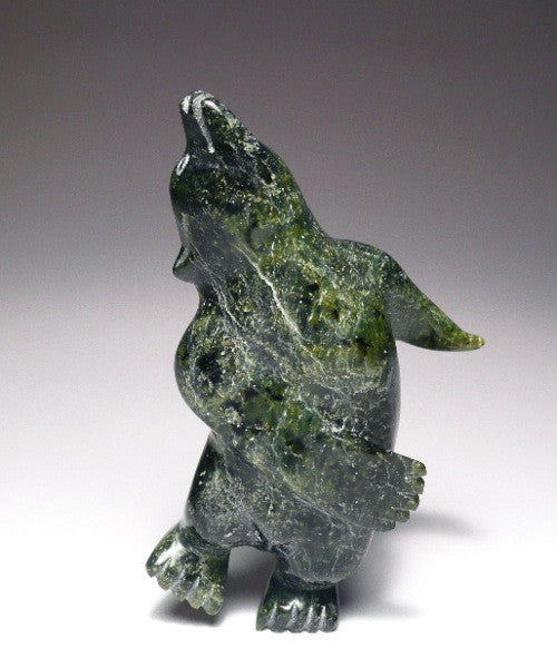 Beautiful green dancing bear by master carver Mosesee Pootoogook.