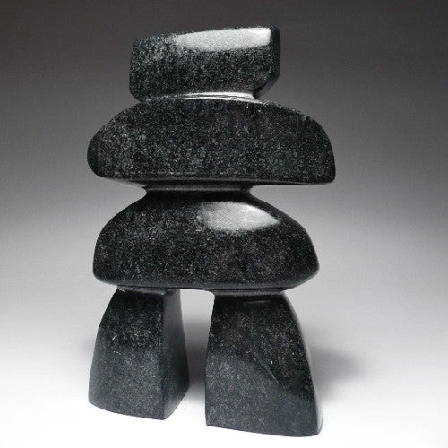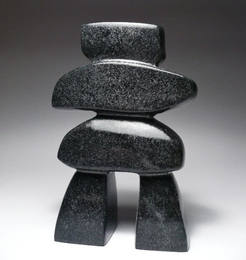 Beautiful well balanced Inukshuk in traditional grey stone from Iqaluit. The curves are exceptional The dark grey stone adds a beautiful clash between modernism and traditional style.