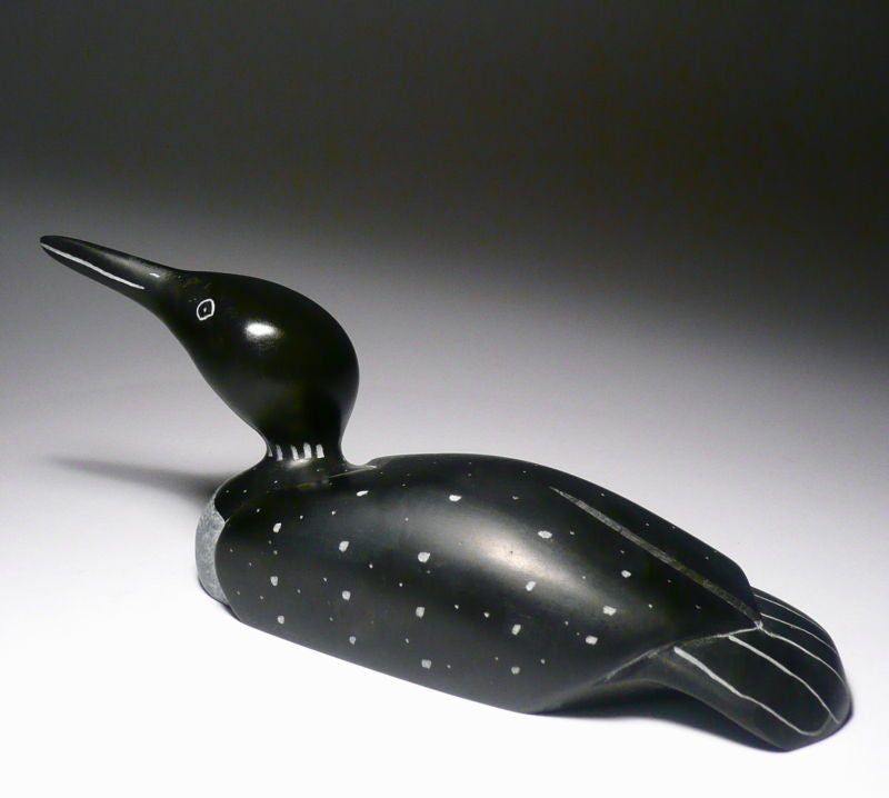 This is a beautifully carved Loon by Inuit artist Josie Iqaluq from Sanikiluaq, Nunavut.