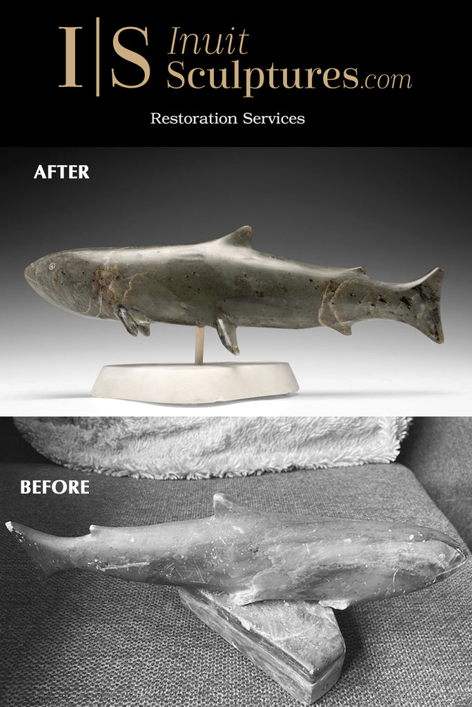Our professional carver has restored this stunning piece by Master Carver Sammy Annahatak to its original perfect condition. You will NEVER see the repair!