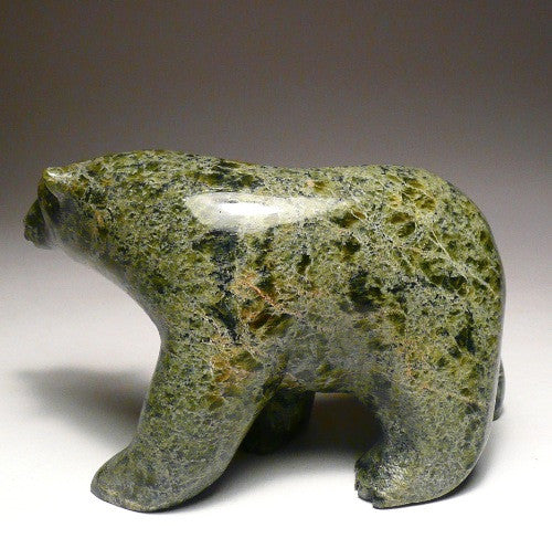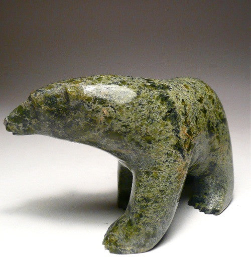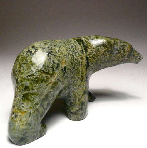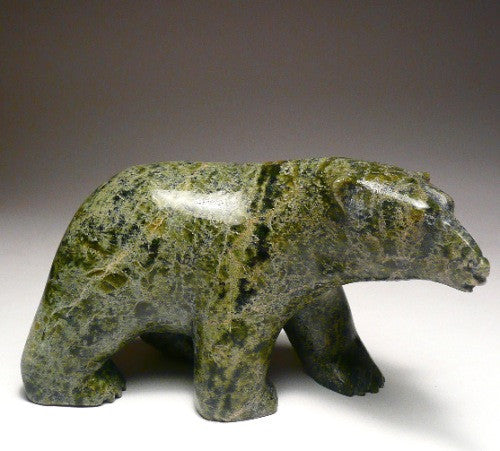 Noo Atsiaq was born in Iqaluit (Frobisher Bay), Nunavut and now lives and carves in Cape Dorset, the capital of Inuit art. His Parents are Alashua Atsiaq and Piulia Pudlalik Atsiaq. Noo has been carving since he was a young kid. He was initially taught by watching other carvers. His favorite subject is bears, dancing, diving and walking. Sculptures by Noo Atsiaq are well known and thought after in the Inuit art collectors world. He also occasionally carves people and caribou.