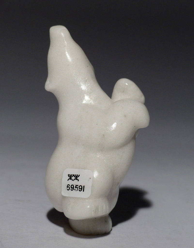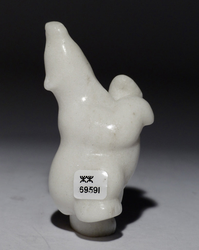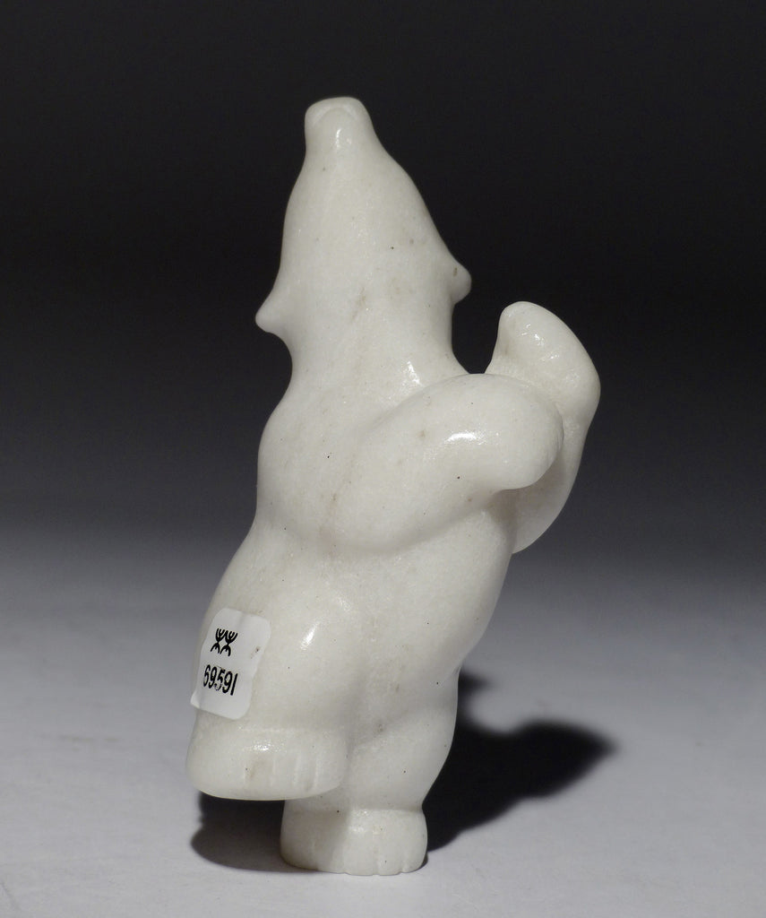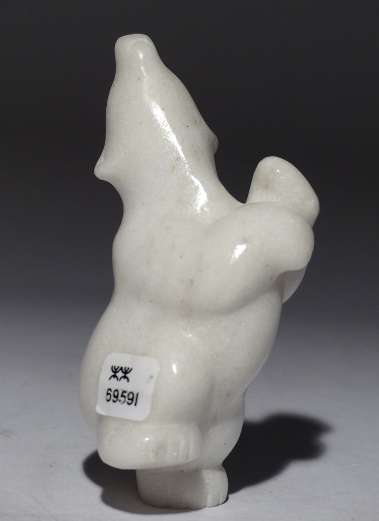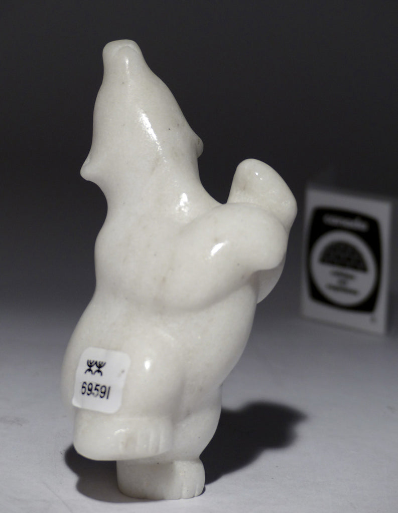 This is a an absolutely stunning dancing bear by Markosie Papigatok. Markosie is extremely talented for dancing bears and this what his specialty is. White bears are more rare than other colours, because it's harder for Inuit artists to acquire white marble.