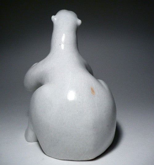 This graceful sitting bear is simply a masterpiece. When comparing a bear like this to others, it is clear to the eye the difference in refinement, life like movement and curvatures. This is why Lew Phillip is probably the best Inuit artist in the world. Because their is more detail and composition to this piece, its value is increased significantly. like all of Lew's bears, this one is also proportioned perfectly to the actual movements of a real bear. It measures 6.2" long, 6" deep, 4" wide.