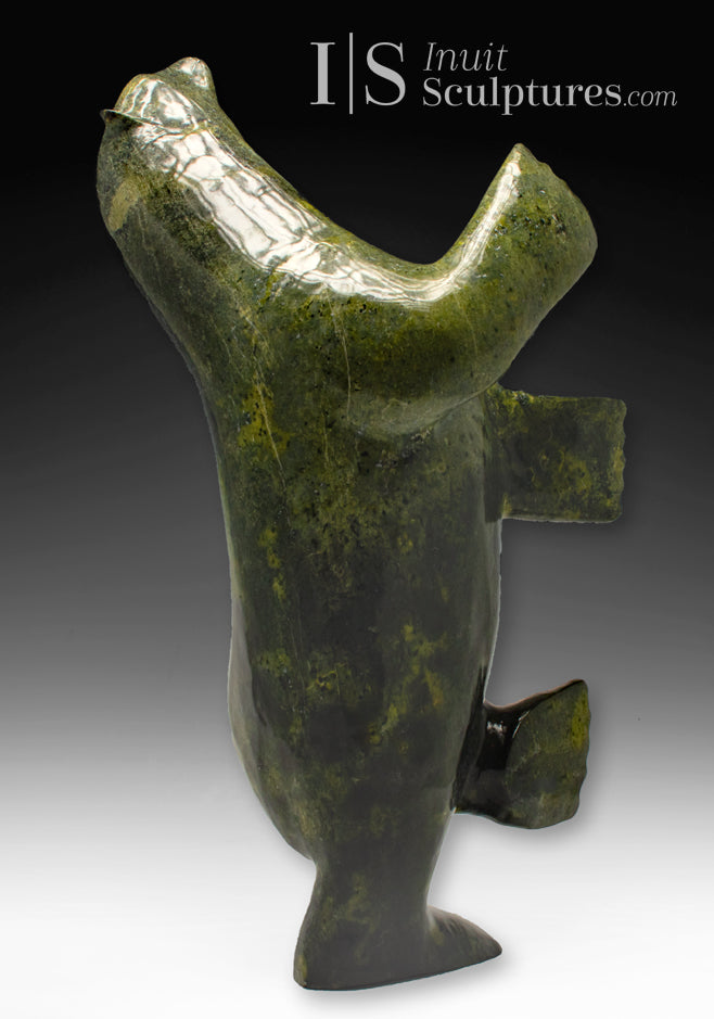 NOTE: Several years ago, Nuna suffered an injury to one of his arms which severely limited his carving. At that time, we were able to acquire a dancing bear which one of his relatives helped him carve by holding the stone. Happily, he recovered but the volume of his carvings has diminished. This is life.  Carving stone is physically brutal.