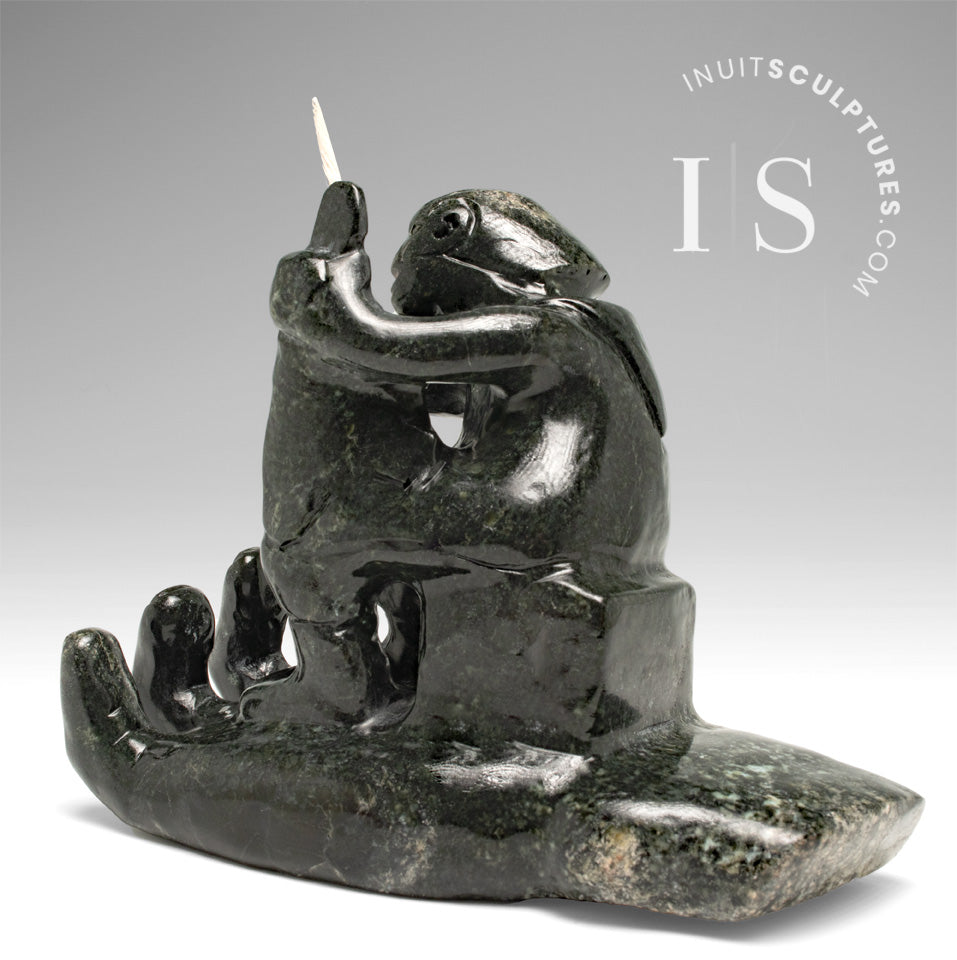 Inuit Art: Carvers HandInuit Artist: Kelly EtidloieSize: 9" across, 7.5" high, 5" deepCommunity: Cape Dorset, NU 9/25Stone: Serpentine id: dfa-7055QaejjyNOTE** Inuit Art is Handcrafted in Canada. It ships TARIFF-FREE to the USA.