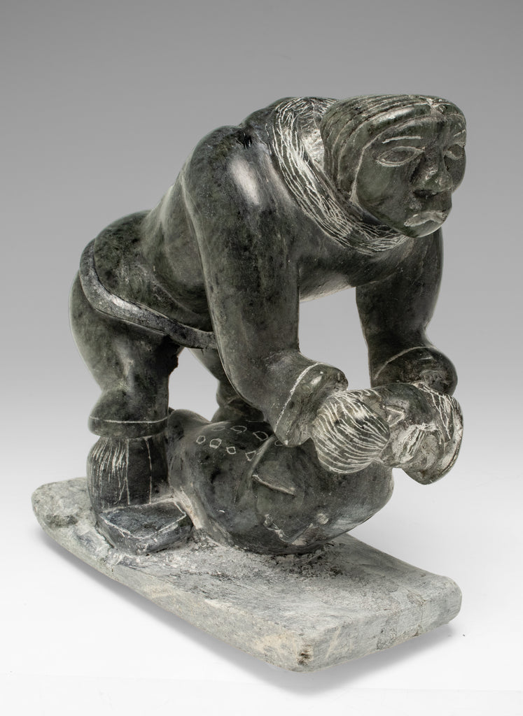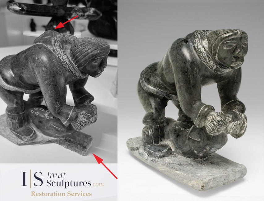 This is a gorgeous hunter from Povurnitiq (1960's). Half of the base and the hood at the back were utterly broken and missing.