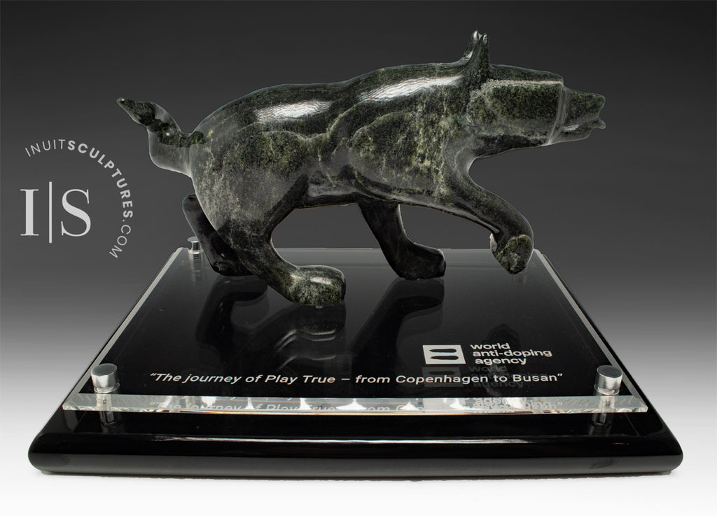 Placing your Inuit carving on a beautiful base, gives it stability, and allows you to immortalize the occasion with an inscription.