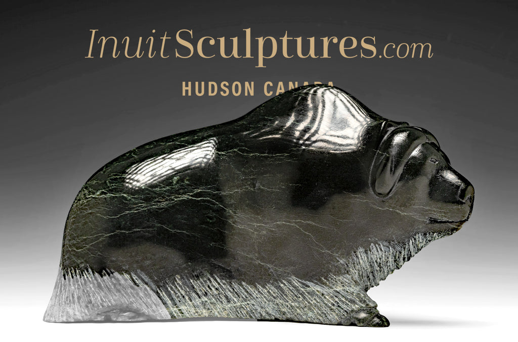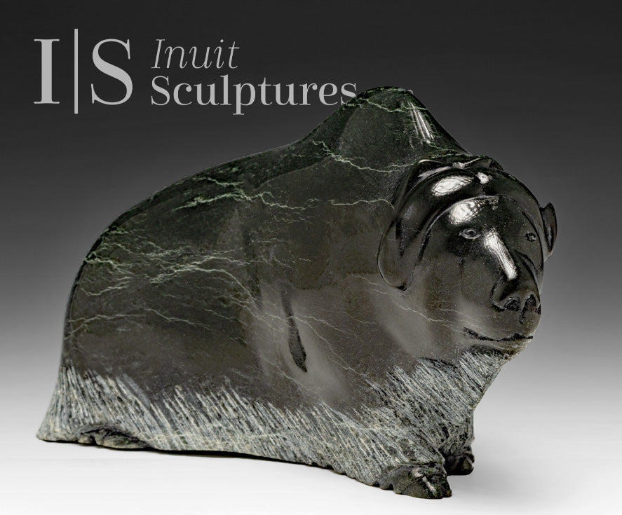 Muskox is carved using a brilliant black stone dripping in a finish that is smooth and silky.