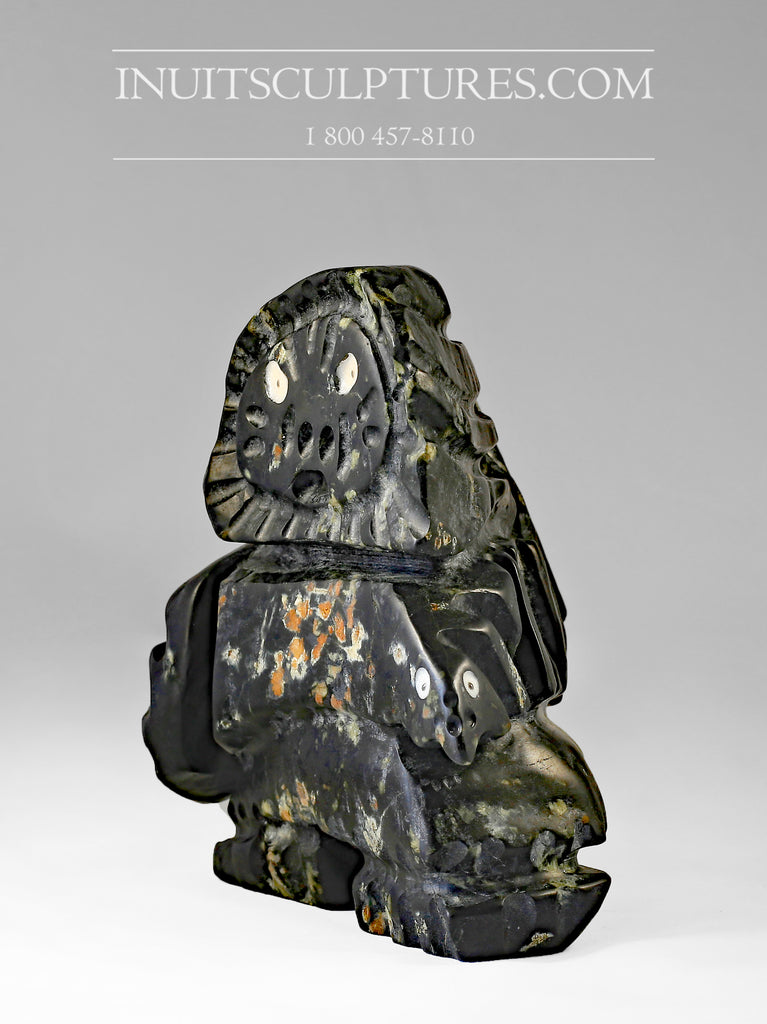 Clayton Kekneck follows in the footsteps of famed international carver Judas Ulluluq (also from Gjoa Haven). Kekneck’s creative soapstone carvings challenge the imagination of his admirers.