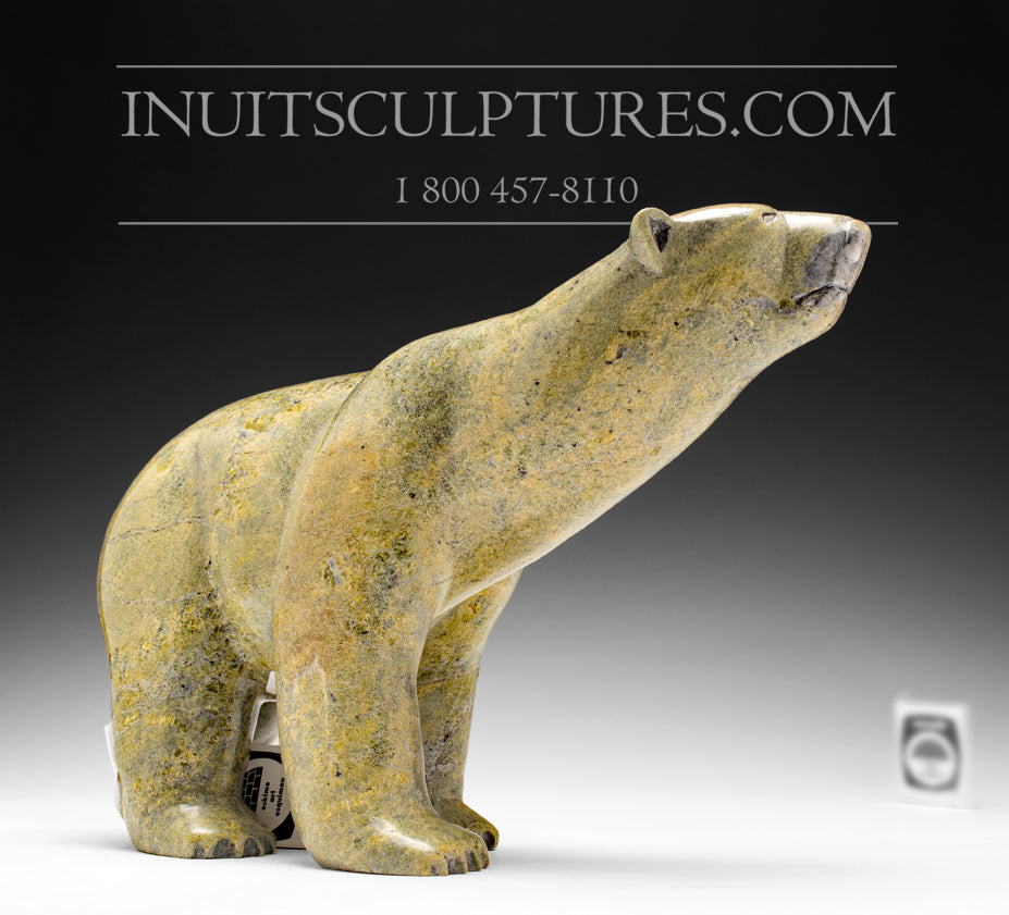 This is a spectacularly and beautifully finished light green and yellow polar bear by Isaaci Petaulassie.