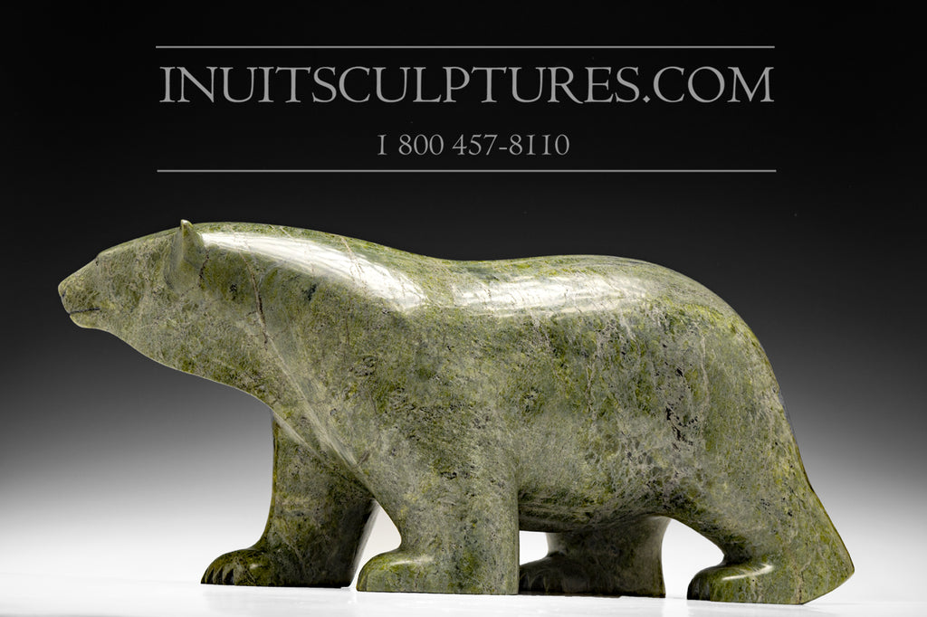 This monumental work is possibly unique in Adla's oevre in that it strays from his more medium sized format of dancing bears. Adla is just as famous for his depiction of dancing & walking bears as is the likes of other greats like Nuna Parr and Joe Kavik. He has created an impressive body of sculptures depicting human figures and other animals as well, but it is his affinity with the dancing bear that has captured the imagination of collectors.