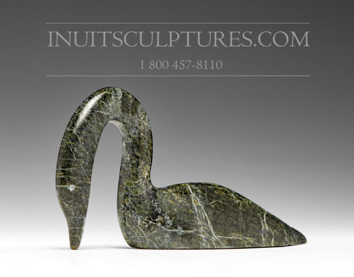 The long arched neck, the long pointed beak  which barely touches the water, the softly carved body: all these features are in perfect proportion.