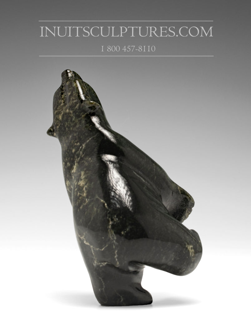 Papigatook's love of the animal shines through both in his art and his words. Rather than carving realistic replicas of bears, this artist chooses to capture the animal's essence; its bearlike character. Papigatoks’s bears almost always stand or 'dance' on one leg, their limbs seemingly truncated or pulled close to the body.