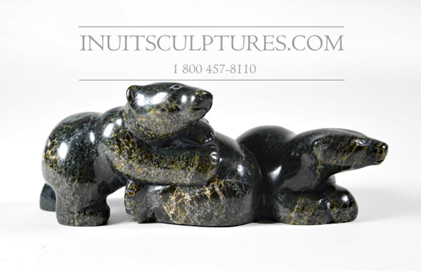 Markosie Papigatook’s Bears are adored simultaneously for their playfulness and their athletic prowess.  Some of the bears appear to be practising martial arts which would make them a perfect gift for the yellow, green or black belt practitioner in your life. These bears’ dual nature reflects the influence the modern world has had on Inuit art.
