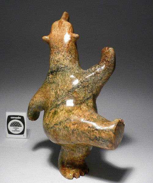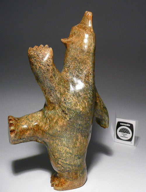 This sculpture measures over 8” tall x 5” wide x 3” deep and is made out of Cape Dorset stone serpentine. The carving is completely perfect, brand new! The sculpture is signed by the artist.