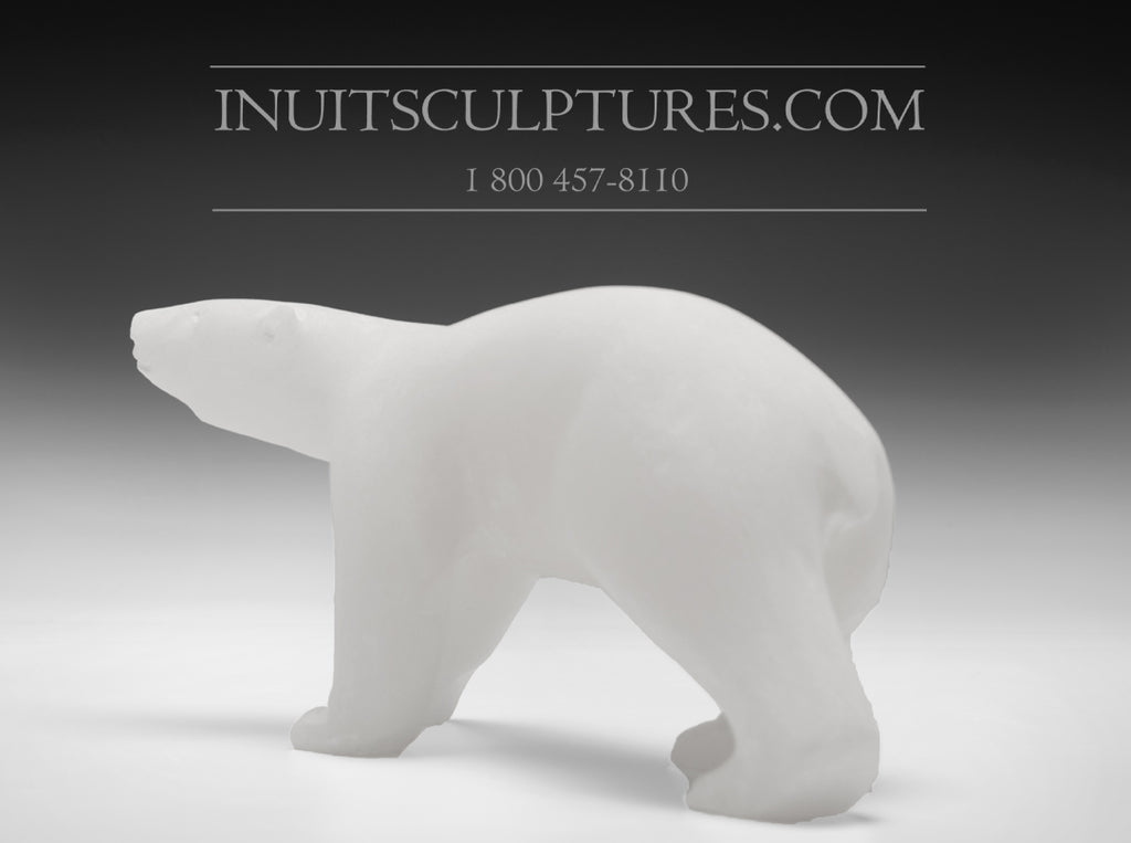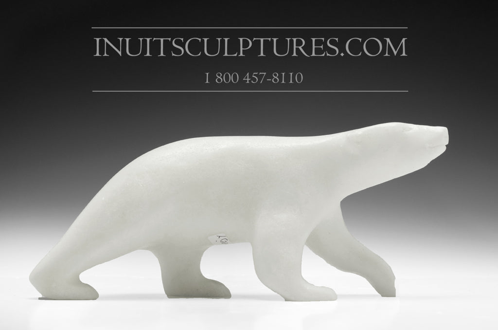 The chic charcoal white finish gives this piece a luminescent glow. Nasogaluak’s bears are always striding with purpose perhaps in search of food. His details and proportions are perfect. Nasogaluak’s bears tend to be sleek and well muscled.
