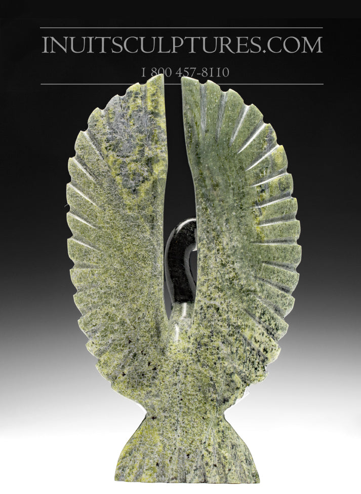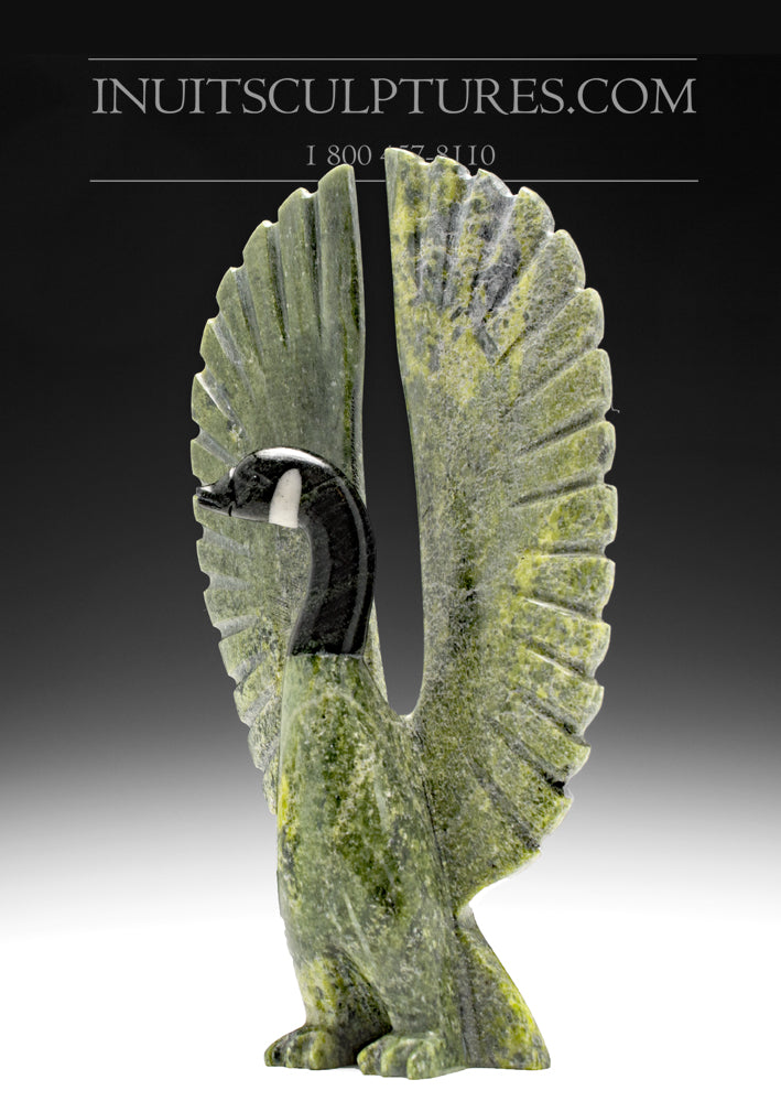 This is a beautiful goose from Cape Dorset directly from Johnysa Mathewsie. What is so special about this carving is the striking dark color of the head.