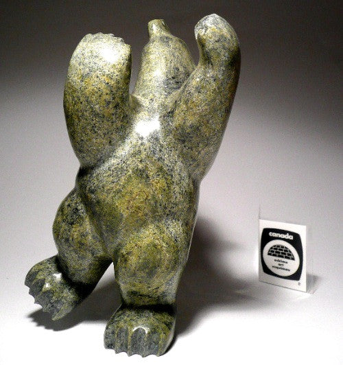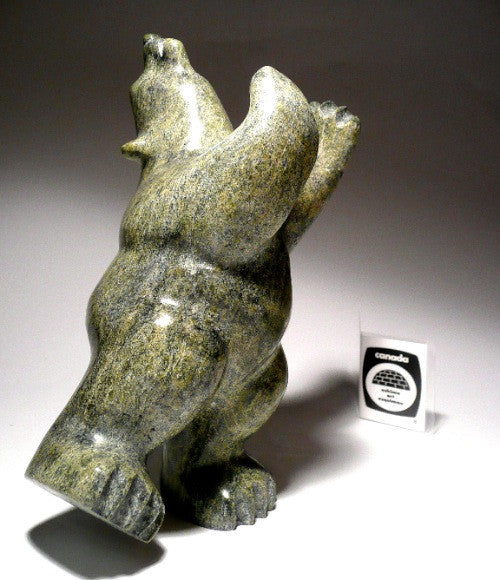 This is a superb and striking traditional green dancing polar bear by master Inuit carver Johnny Manning from Cape Dorset