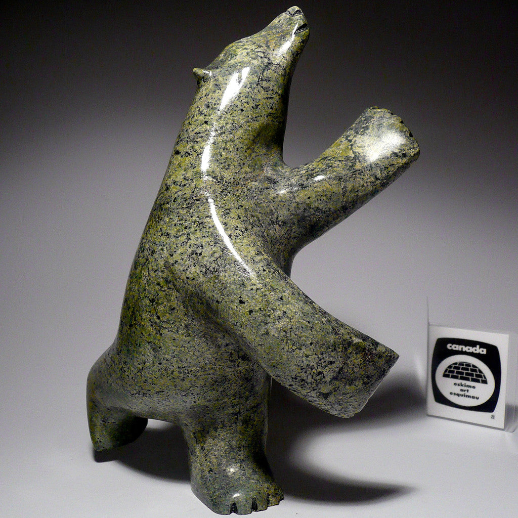 This is a spectacular dancing bear by the acclaimed Inuit artist Noo Atsiaq. This masterpiece was acquired directly from his hands in Cape Dorset (arctic Canada). This stunning Inuit carving comes with an Igloo Tag (Certified of Authenticity).