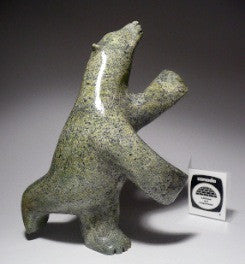 Noo Atsiaq was born in Iqaluit (Frobisher Bay), Nunavut and now lives and carves in Cape Dorset, the capital of Inuit art. His Parents are Alashua Atsiaq and Piulia Pudlalik Atsiaq. Noo has been carving since he was a young kid. He was initially taught by watching other carvers. His favorite subject is bears, dancing, diving and walking. Sculptures by Noo Atsiaq are well known and thought after in the Inuit art collectors world. He also occasionally carves people and caribou.